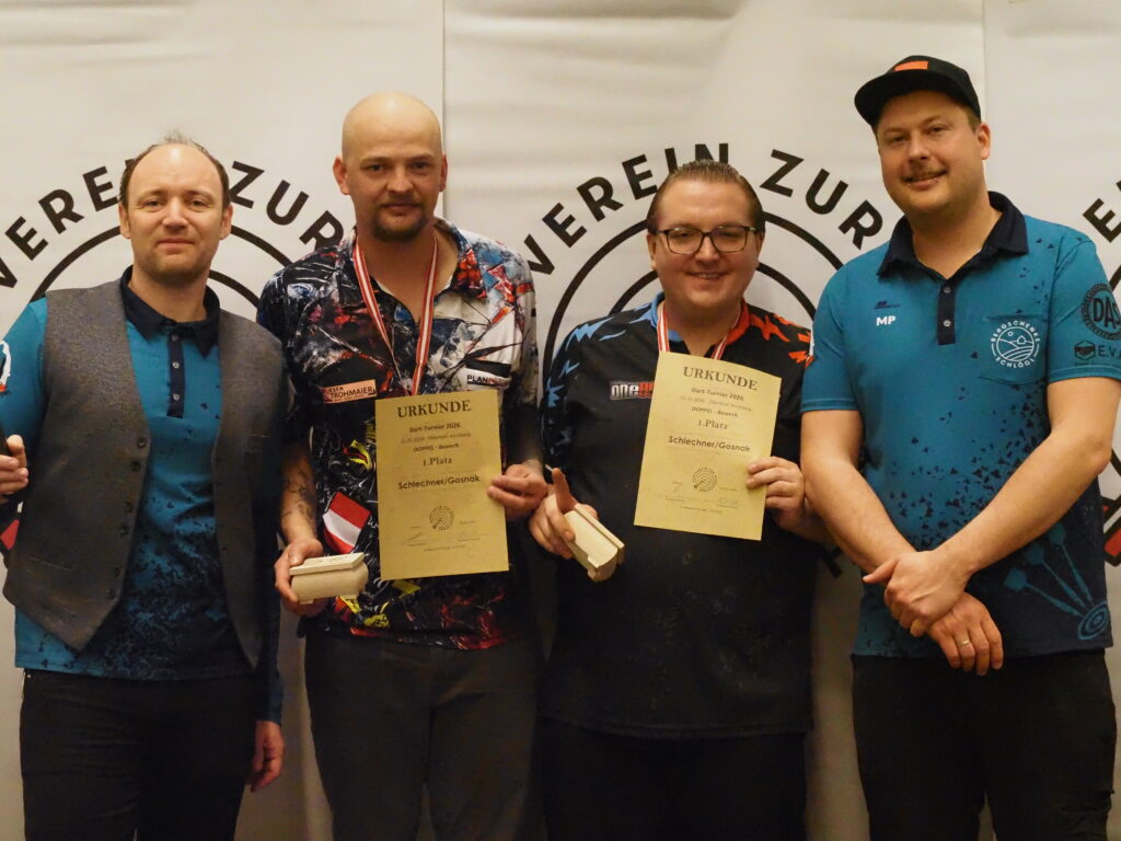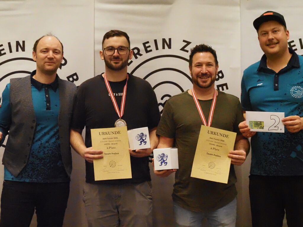 Das Duo GOSNAK PATRICK und SCHLECHNER DANIEL durfte sich am frühen Nachmittag über die Siegermedaillen und € 400,- Preisgeld im Doppel-Bewerb freuen. Zweiter wurde das TEAM FREILOS, zwei herausragende, heimische Hobbyspieler.